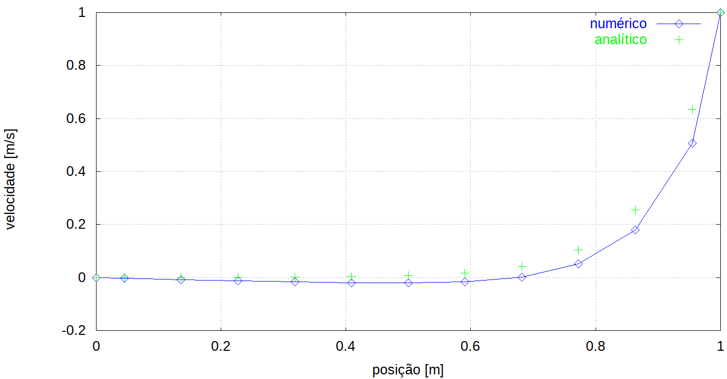| Velocidade média analítica, $\\bar{u}_{ana}$ | 9.995459801E-02 |